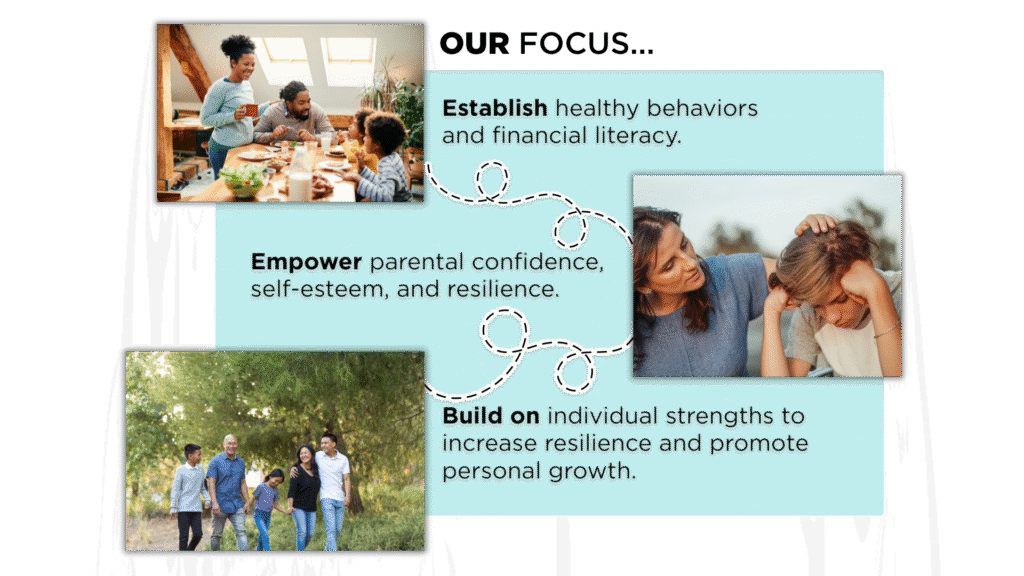 Parent Education series is designed for families at risk or those who have experienced child removal due to abuse or neglect. Goals include: