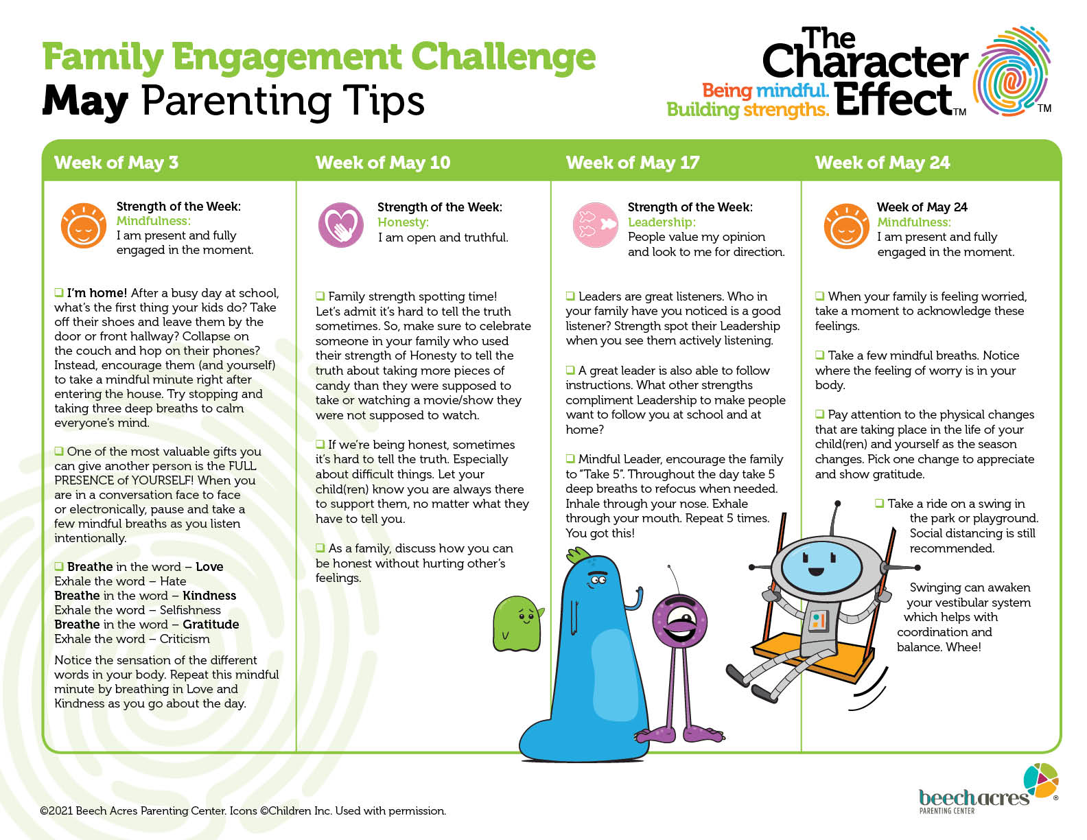 This month The Character Effect™ brings you the May Family Engagement Challenge! We’ll be focusing on the strengths of honesty and leadership! Download the tips and get started today!